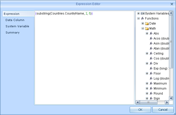 An example of using on the base of Samples\webfx**. Suppose you need to implement a custom **substring function. In the class my.actions.MyRenderReportAction write the following: