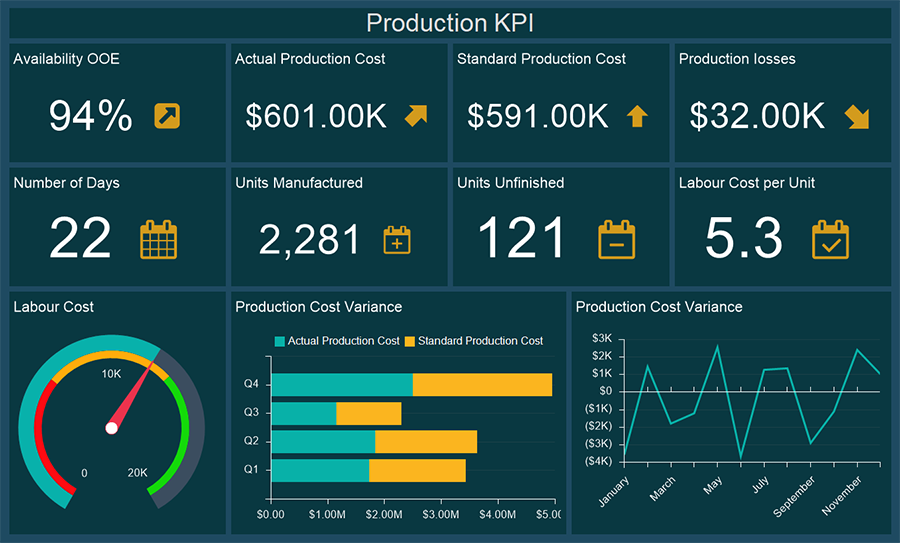 The Dashboard component is a scalable area on which you can place elements of data analysis. All elements placed on the dashboard can be related to each other or split into groups of related elements. The dashboard panel is created in the report designer and viewed in the preview panel in the report designer or viewer.