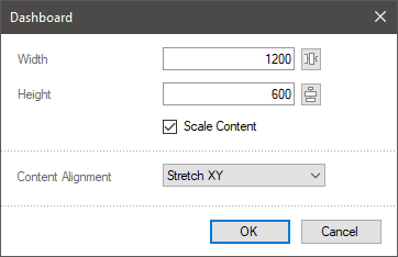 Stretch X. In this case, a dashboard will be stretched horizontally across the entire viewer area. The height of the current dashboard can also be changed so as the aspect ratio of the dashboard will be kept.