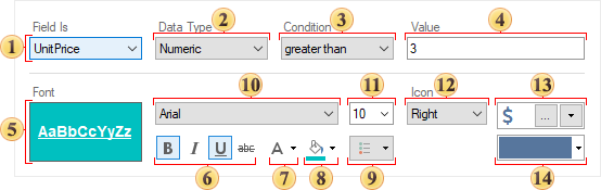 The Font Size parameter. It is used to set the font size in the cell of the pivot table to which the conditional formatting will be applied.