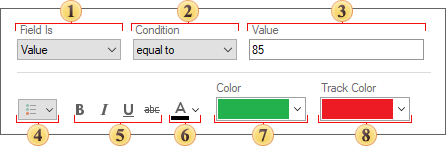 Format settings menu. In this menu, you should check the conditional formatting parameters that must be applied to the progress, if the condition is executed.
