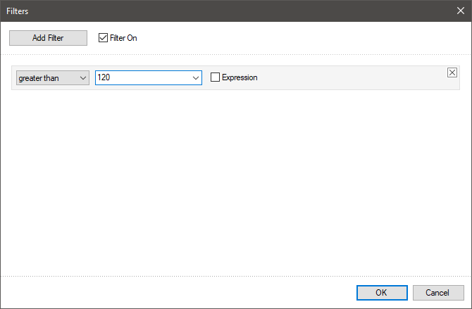 The filter editor will be called. You should add filters, define a logical operation and value. When this filter is triggered, the values will be displayed.