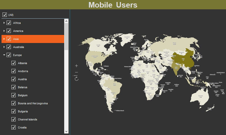 Tree View is a filtering element on the dashboard, which is used to create a hierarchy of values and filter data for analysis in the viewer by these values. It can be located anywhere on the dashboard panel. Depending on the size of the dashboard in the viewer, it can grow and shrink by height and width.