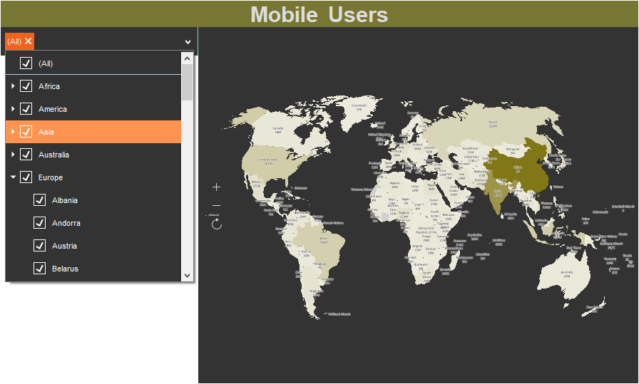Multi. In the viewer, you can select multiple values within the same level of the hierarchy of values. Accordingly, data filtering for the elements of the dashboard will be performed by all selected values.