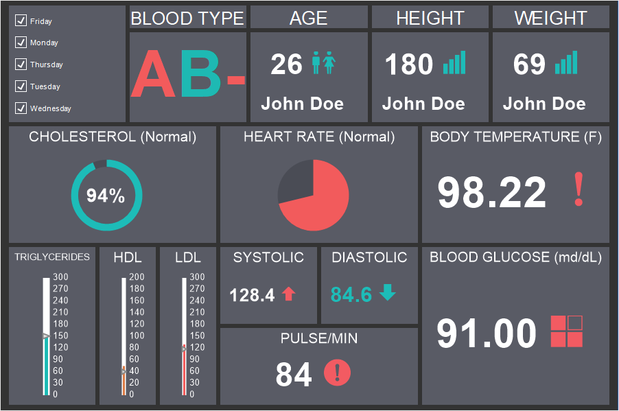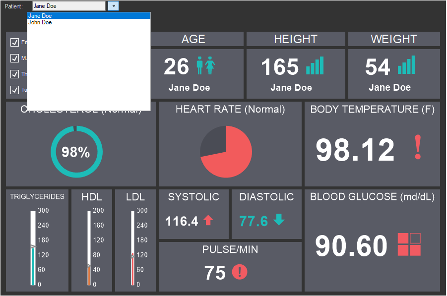 Suppose there is a dashboard that displays the results of the examination of patients in a clinic.