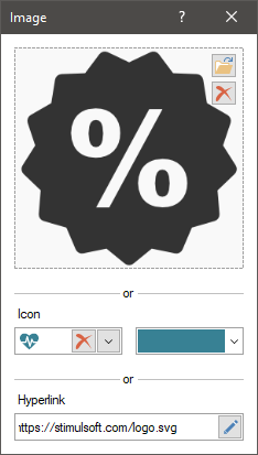 An image by a hyperlink has the lowest priority. The hyperlink will upload the image in the current element if the image from the local storage is not loaded, and the icon is not selected.