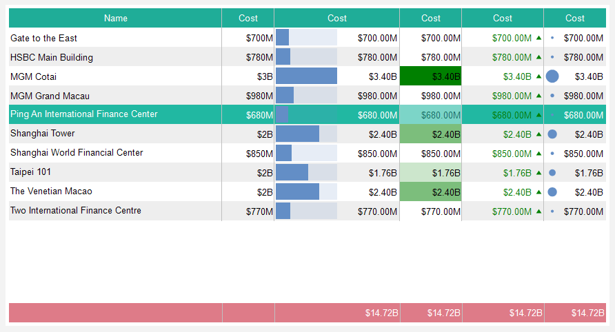 Data Bars, the type in which different functions can be applied to the values of the data field, and a data bar will be added for each value of this field.
