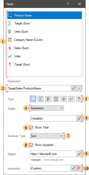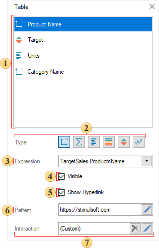 | Hyperlink Pattern | It allows you to specify a hyperlink for the values of the current data field. |