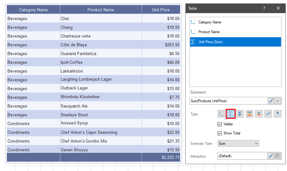 | Summary Alignment | It allows you to align the value of total in a range: Left, Center, Right. |