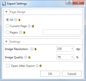 The flag Open After Export enables/disables the automatic opening of the created document (after completion of exports), the default program for these file types.