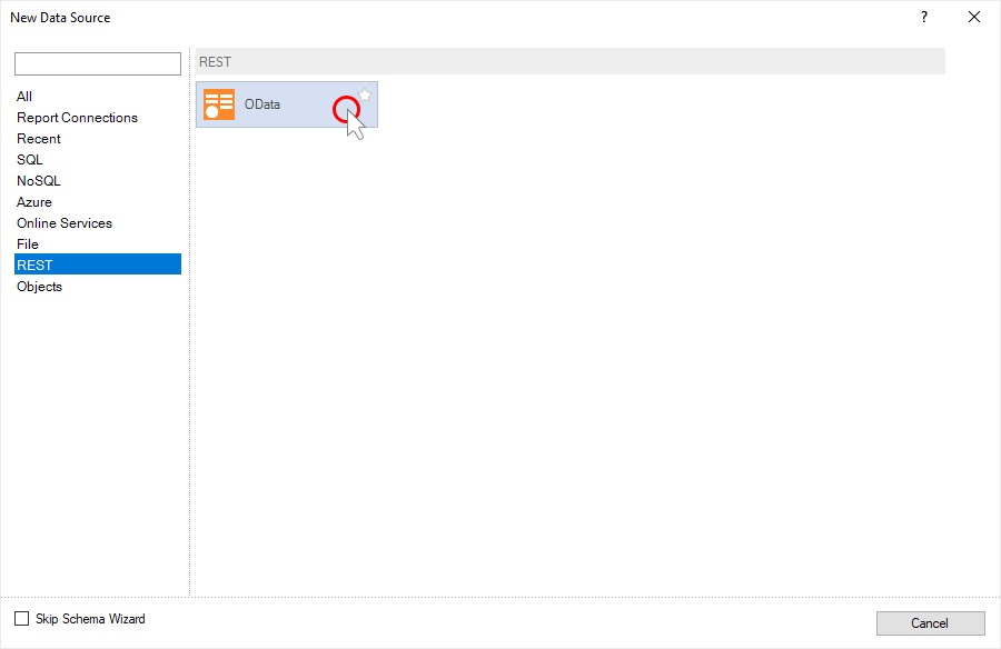 Step 7: After successful installation of the data adapter, a window for creating a connection to the data storage will open. In the case of the OData data storage, the data path should be specified.
