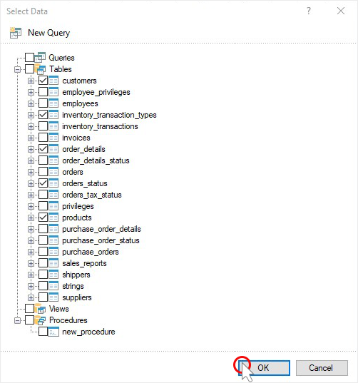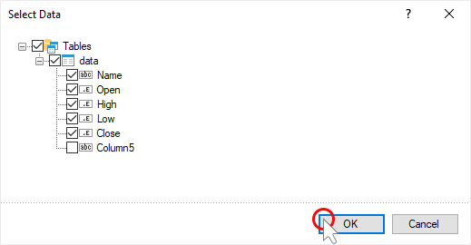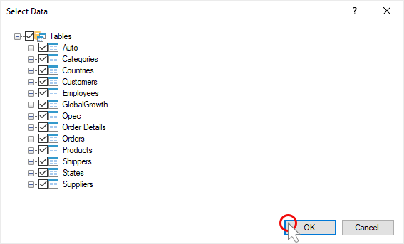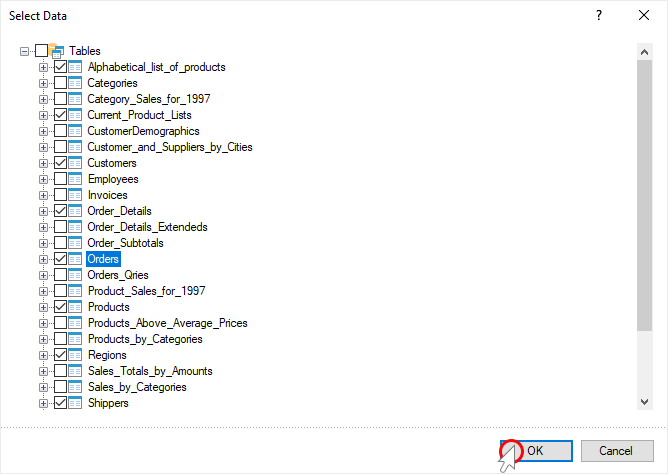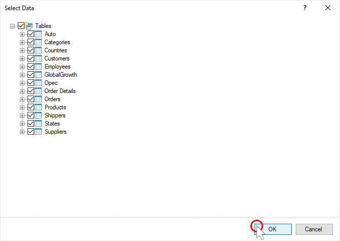 Step 10: After selecting the data tables, click the OK button in the Select Data window.