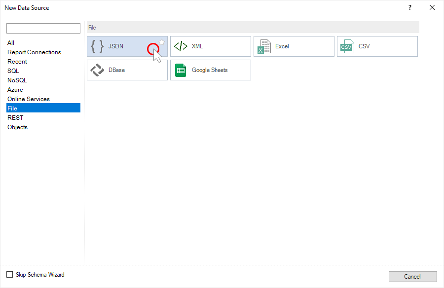 When you design reports, you can get data from CSV, Excel, JSON, XML, and DBF files. The main advantage of data files is that you can embed them in a report template. However, the size of the report file will be increased by the size of the data file.