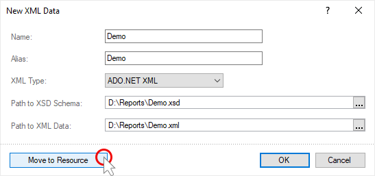 When you design a report, you can embed all created data sources in a report file. Each type of connection will be converted to a separate XML file and embedded into the report file as a resource. In this case, the connection of data sources will be redefined on this resource. However, in this case, you should know that:
