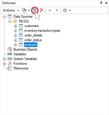 Step 2: Click the Edit button on the toolbar of the data dictionary;