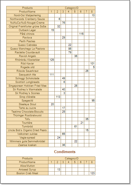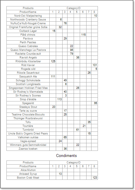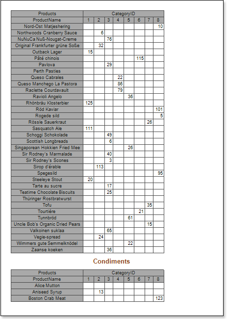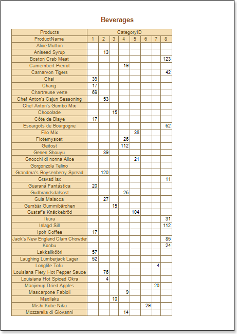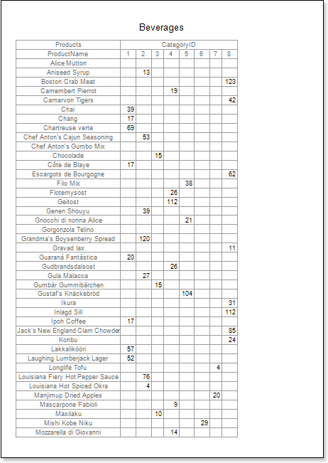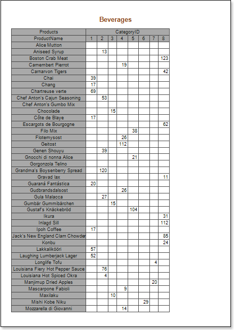 - Render a report. Click the Preview button or call the Viewer by selecting the Preview of the menu item. The picture below shows an example of the cross-table report: