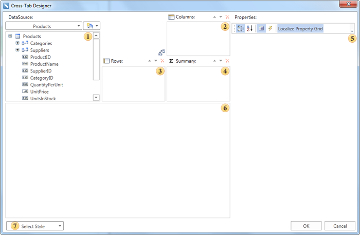 Summary field of the cross-table. For example, add the UnitInStock data column to the Summary field of the cross-table, entries in this data column will be summary entries in the cross-table;