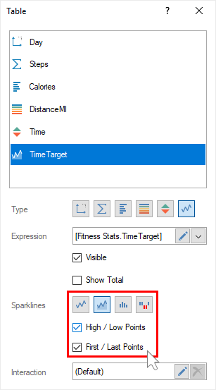 Step 4: For Sparklines, specify the parameters of the sparklines and its type.