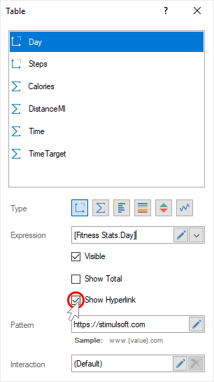 Now, when you click on the value of the current data field, a transition will be carried out on a given hyperlink.
