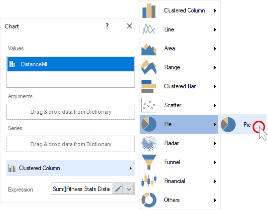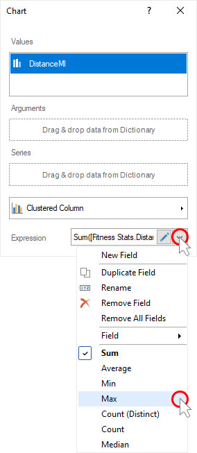 Step 10: Click the Browse button in the Expression field and select the function of aggregating values, if necessary. By default, the Sum() function is used, which sums the values from the specified data column.