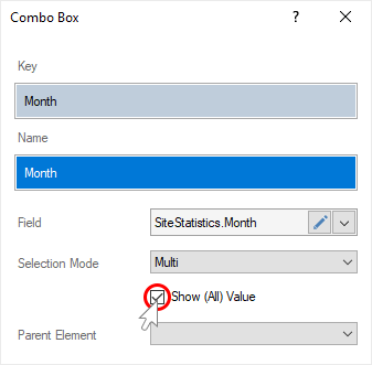 Step 11: If you need the list of values contain the All value, you should set a checkbox next to the Show (All) Value parameter.