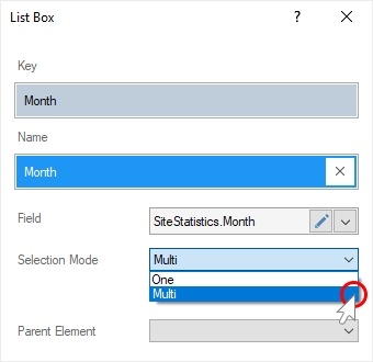 Step 10: If you need to permit to select only one value of the current element, you should set the One value for the Selection Mode parameter. Set the Multi value for the Selection Mode parameter, if you need to permit to select several values of the current element.