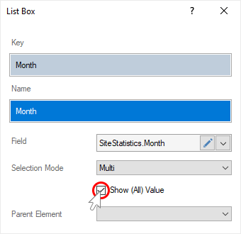 Step 11: If you need the list of values contain the All value, you should set a checkbox next to the Show (All) Value parameter.