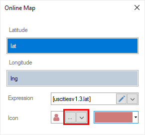Step 3: In the Icon parameter field, click the Browse button on the local storage to load the user icon, or Browse to open the built-in list of icons;
