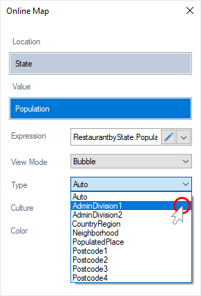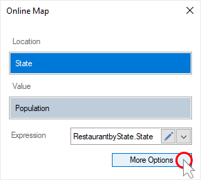 This option is available only for online map by location. To display the values of geographic objects on an online map, you should do the following: