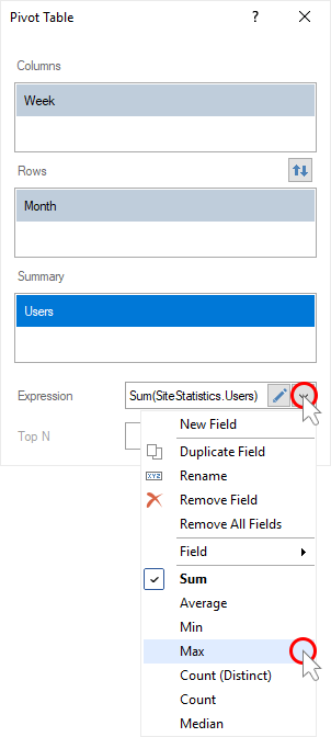 Step 9: Click the Browse button in the Expression field and select the function of aggregating values, if necessary. By default, the Sum() function is used, which sums the values from the specified data column.
