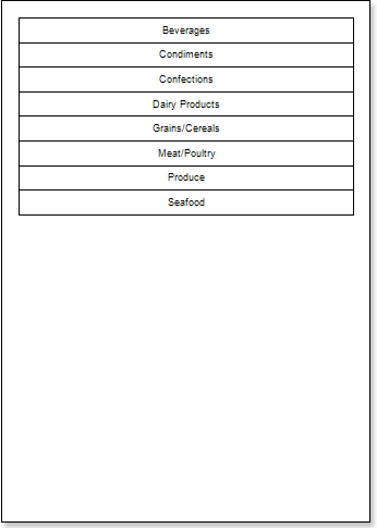 - Click the Preview button or invoke the Viewer, clicking the Preview menu item. The picture below shows the structure of the report, shows the ratio of the detailed data to the Meat/Poultry master entries with different styles of even/odd rows of the DataBand in the detailing report:
