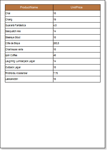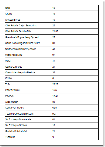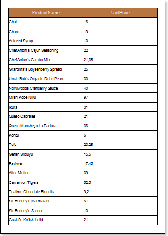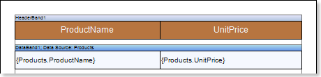 Put text components with expressions in the DataBand. Where the expression is a reference to the data field. For example: put two text components with the {Products.ProductName} and {Products.UnitePrice} expressions in the DataBand;