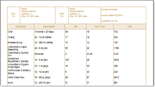 1. Put text components in the HeaderBand with texts Unit Name, Description, Qty, Item Price, Total;