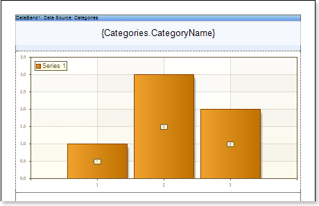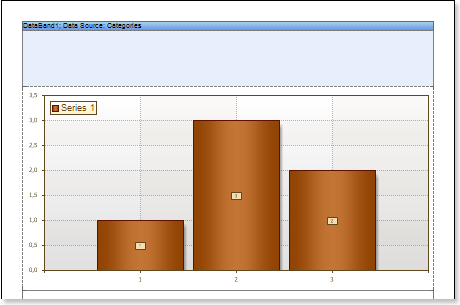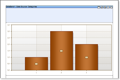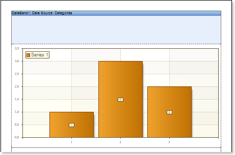 Suppose a Chart component is placed on the page of the report, then, for a report, this component will be rendered as a page item. If the Chart component is placed in the DataBand, then, when rendering a report, this component will be rendered as part of the DataBand. Since the Chart component placed in the DataBand, is rendered as a part of the DataBand, and will be printed as many times as the DataBand will be output. An example of designing a report with a chart in the DataBand will be described below. In this example, the chart will graphically display the detailed data of the data source in the DataBand. Follow the steps below to render a report with the Chart in the DataBand: