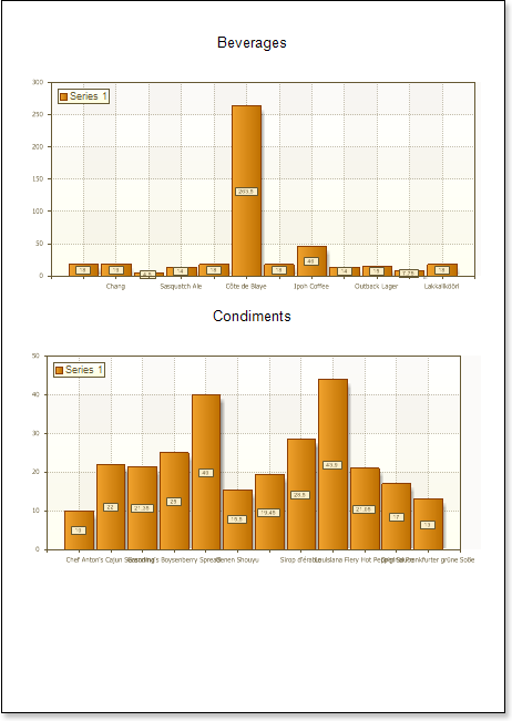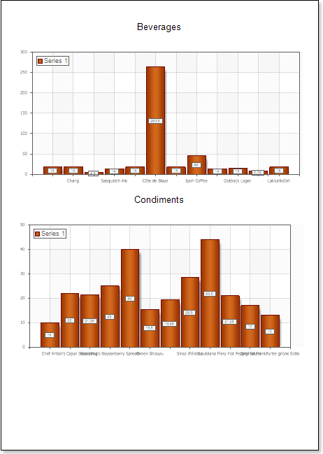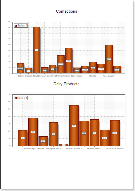- Click the Preview button or invoke the Viewer, clicking the Preview menu item. The picture below shows samples of reports with the chart with a style applied: