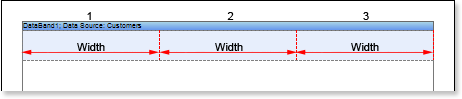 1. Set column options: the number of columns, column width, and column gap. For example, set the number of columns equal to 3, with the gap equal to 0. The column width is created automatically. The picture below shows a sample of the report template with two columns, placed in the DataBand: