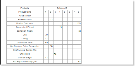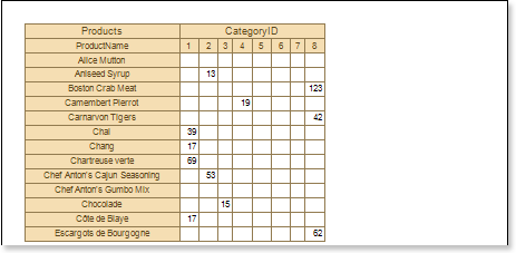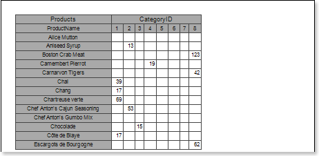 the Rows of the cross-table. For example, add the ProductName data column to the Rows field of the cross-table, and then one entry from this data column will correspond to one row in the rendered cross-table, the number of entries in this data column will be equal to the number of rows in the cross-table;