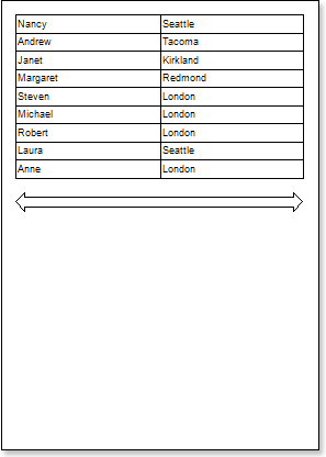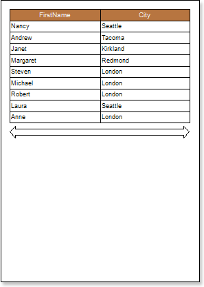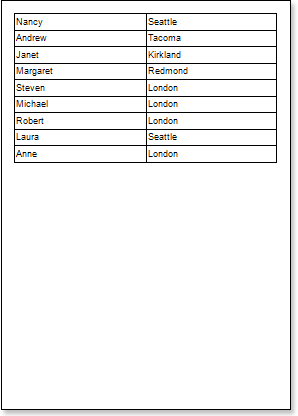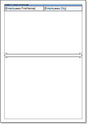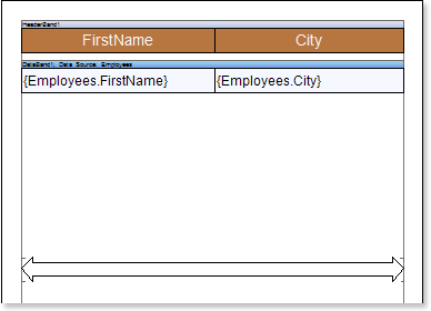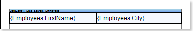 Put text components with expressions on the DataBand. Where expression is a reference to the data field. For example, put two text components with expressions: {Employees.FirstName} and {Employees.City};