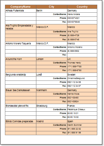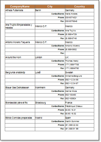 1. Click the Preview button or invoke the Viewer, clicking the Preview menu item. After rendering all references to data fields will be changed on data form specified fields. Data will be output in consecutive order from the database that was defined for this report. The amount of copies of the Table in the rendered report will be the same as the amount of data rows in the database.