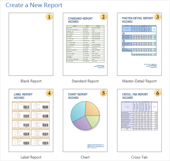 As can be seen from the picture above, there are several ways of creating a report: select a Blank Report, and manually create a report template, or create a report using the report wizards.