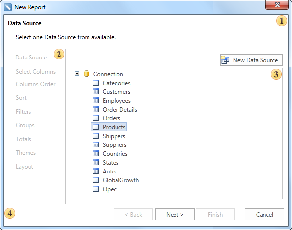 When creating a new report in the New Report dialog you should choose a way to create a report. The picture below shows the Create a New Report dialog: