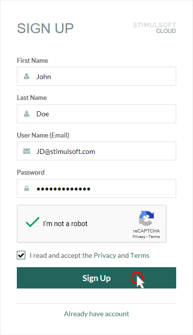 Step 6: Click the Sign Up button, if you agree and accept the privacy policy and terms of use.