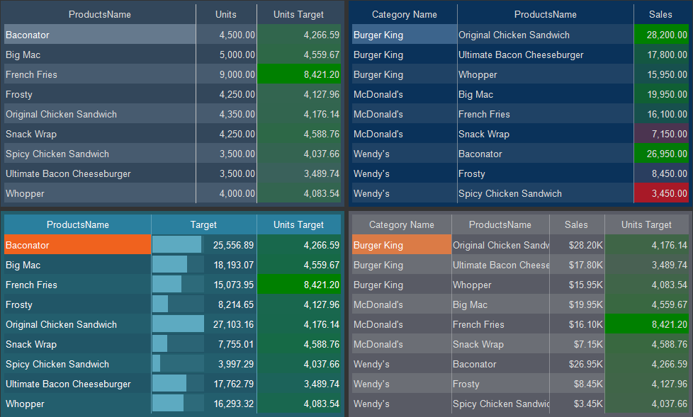 Alternating Data Color Changes the background color of the odd rows of a component or element.