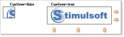 The report generator allows you to set both CanGrow and CanShrink properties. If you set both properties to true the component will automatically increase or decrease in size whenever appropriate. The example below shows an image component that is not large enough to support the height of the image but is too wide for the image width. By setting the CanGrow and CanShrink properties to true the size of the component changes automatically and exactly matches the size of the image.