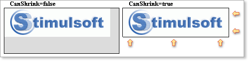 If the CanShrink property is set to true the component can automatically reduce its size so that it fits exactly to the size of the text or image being displayed. If it is set to false the component remains the same size leaving unused space around the information it contains, as in the examples below.