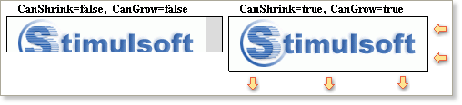 If the CanGrow property is set to true the component can automatically increase its size if the information contained within it does not fit in the space available. If it is set to false the information will be cropped to the component size, as in the examples below: