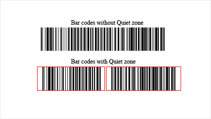 The Quiet zone parameter. It provides the ability to display or hide a quiet zone of a barcode. The Quiet zone is an empty space on the left and right side of the barcode. It is a conditional border of the beginning and end of the barcode for barcode readers. One example of the use of the Quiet zone is the case when there are several barcodes. If the Quiet zone is disabled, then the barcodes can be misread. Below is an example of two barcodes with enabled and disabled Quiet zones.