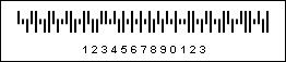 A Royal Mail 4-state Barcode. “1234567890123” is a number encoded in the barcode.