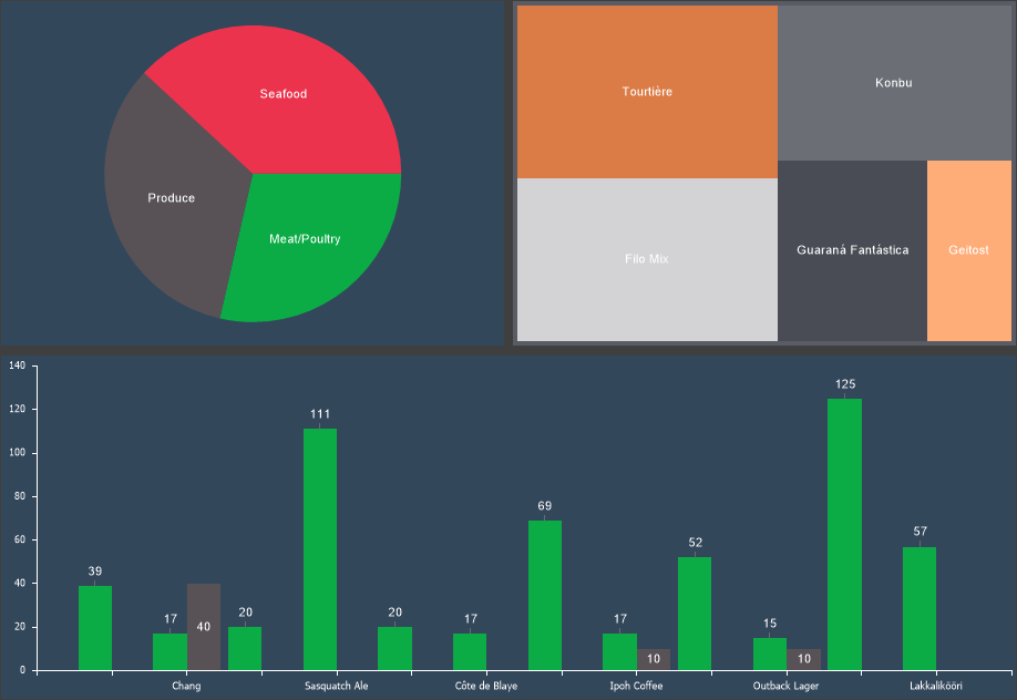 - Without axes – when the area does not contain X and Y axes. Examples: tree map, pie chart, donut chart, etc.