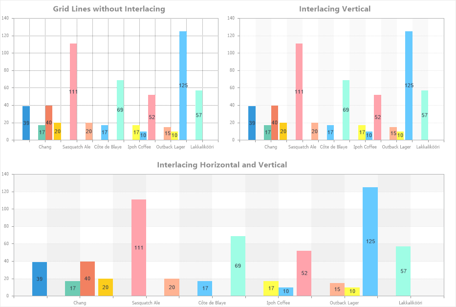 Interlacing Vertical is the process of filling every second vertical gap between the X-axis values across the entire chart area. Vertical filling can alternate with horizontal filling.